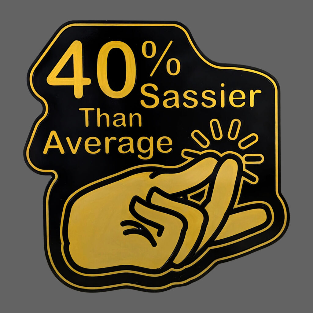This sign celebrates attitude in its simplest, most confident form. 40% Sassier Than Average is rendered in gold on a