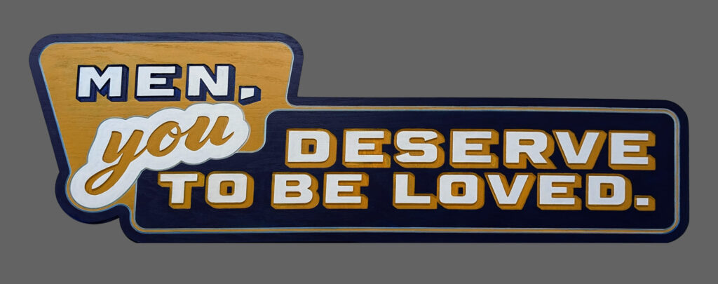 This sign offers a gentle and unexpected affirmation within the visual language of mid century design. Men You Deserve to